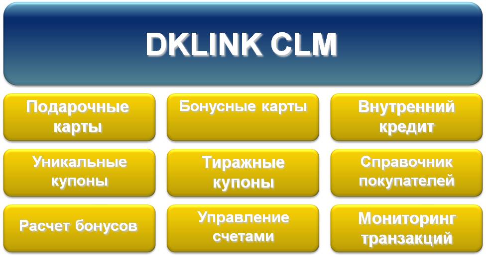 DKLink CLM помогает реализовать бонусные программы, продажу и прием подарочных сертификатов, выдачу и учет промо-купонов. Именно эти инструменты продаж являются на сегодняшний день наиболее эффективными и востребованными для построения реально работающих маркетинговых программ по управлению лояльностью покупателей в розничной торговле.
